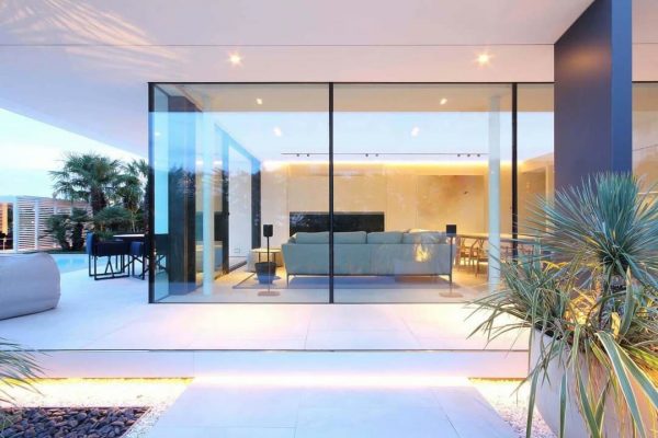 - Ưu điểm vách kính nhôm slim + cửa đi mở quay