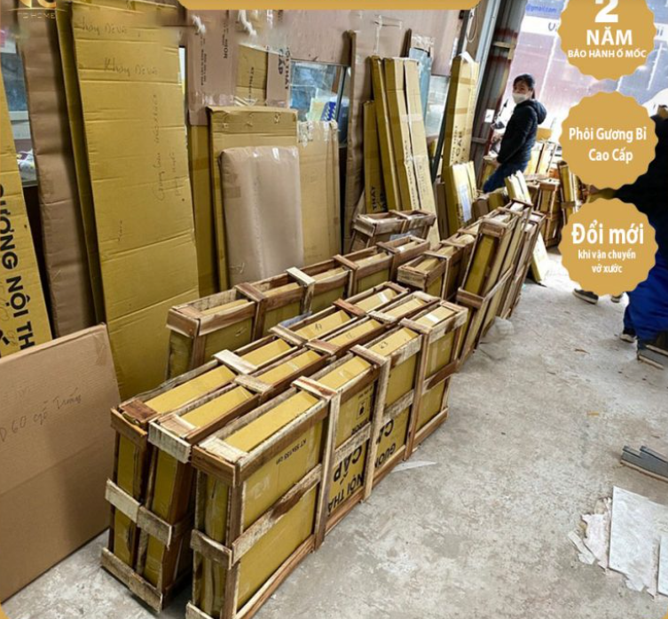 * Đóng gói sản phẩm gương phòng tắm nghệ thuật hiện đại:
